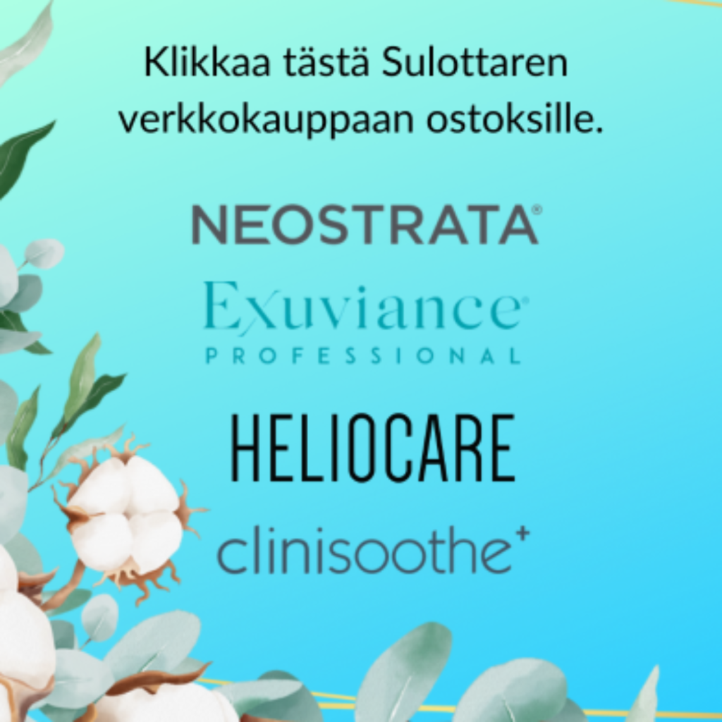 SKY-kosmetologisi on ihonhoidon Personal Trainerisi. Neostrata ja Exuviance Professional –tuotteet ovat ammattilaistuotteita. Ne ovat tehokkaita ja niillä saadaan tuloksia ihonhoidossa. Kaikki tuotteet eivät käy jokaisen iholle ja joidenkin tuotteiden käyttö vaatii iholta totuttelua. Siksi onkin tärkeää, että käyt hoitolahoidoissa päivittämässä ihosi tarpeen, jolloin voin auttaa Sinua valitsemaan ihollesi oikeat tuotteet – ostitpa ne sitten hoitolakäyntisi yhteydessä tai verkkokaupasta Salonki Sulottaren nettisivujen kautta. Verkkokaupasta voit ostaa myös laadukkaita Heliocare-aurinkosuojatuotteita